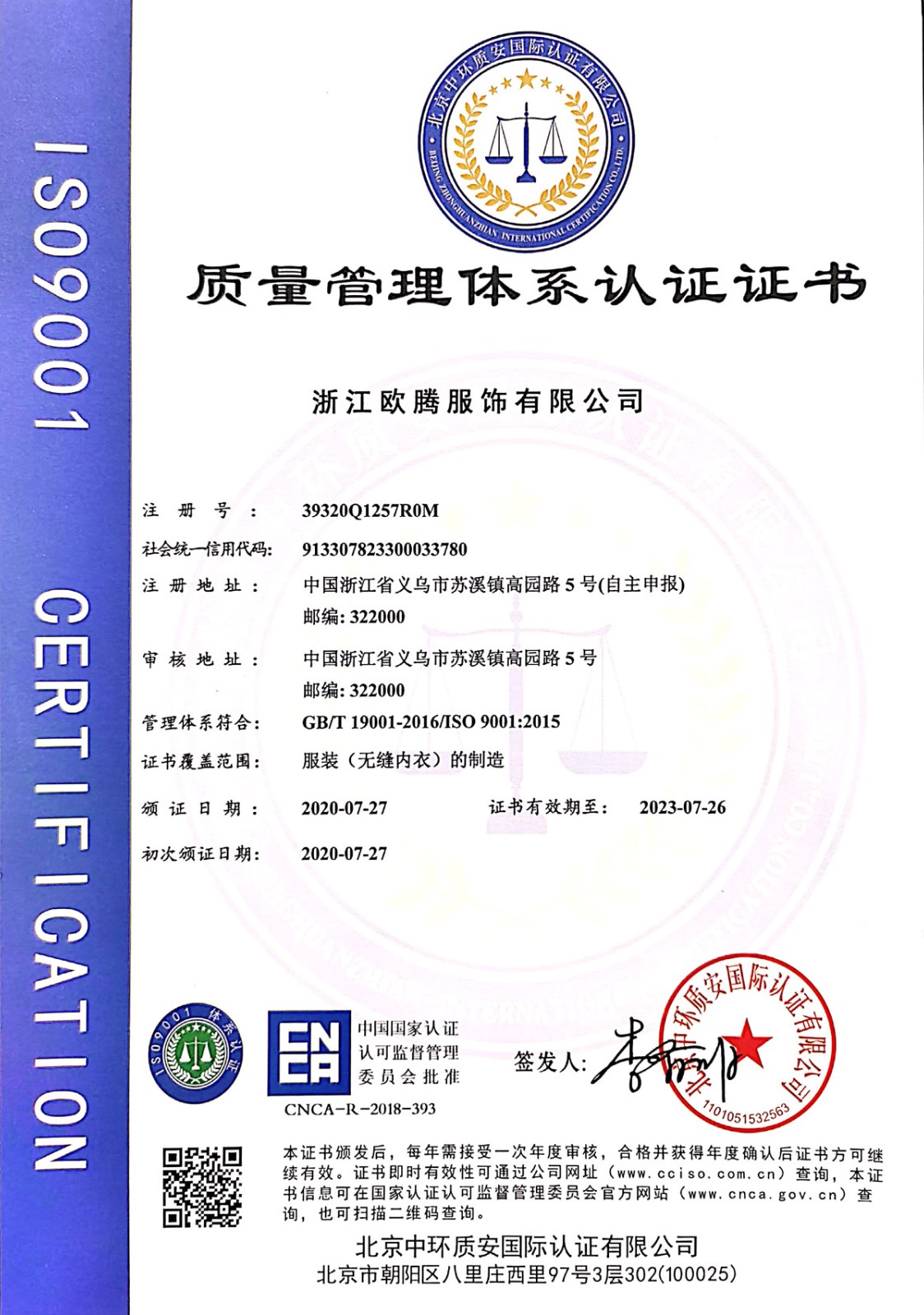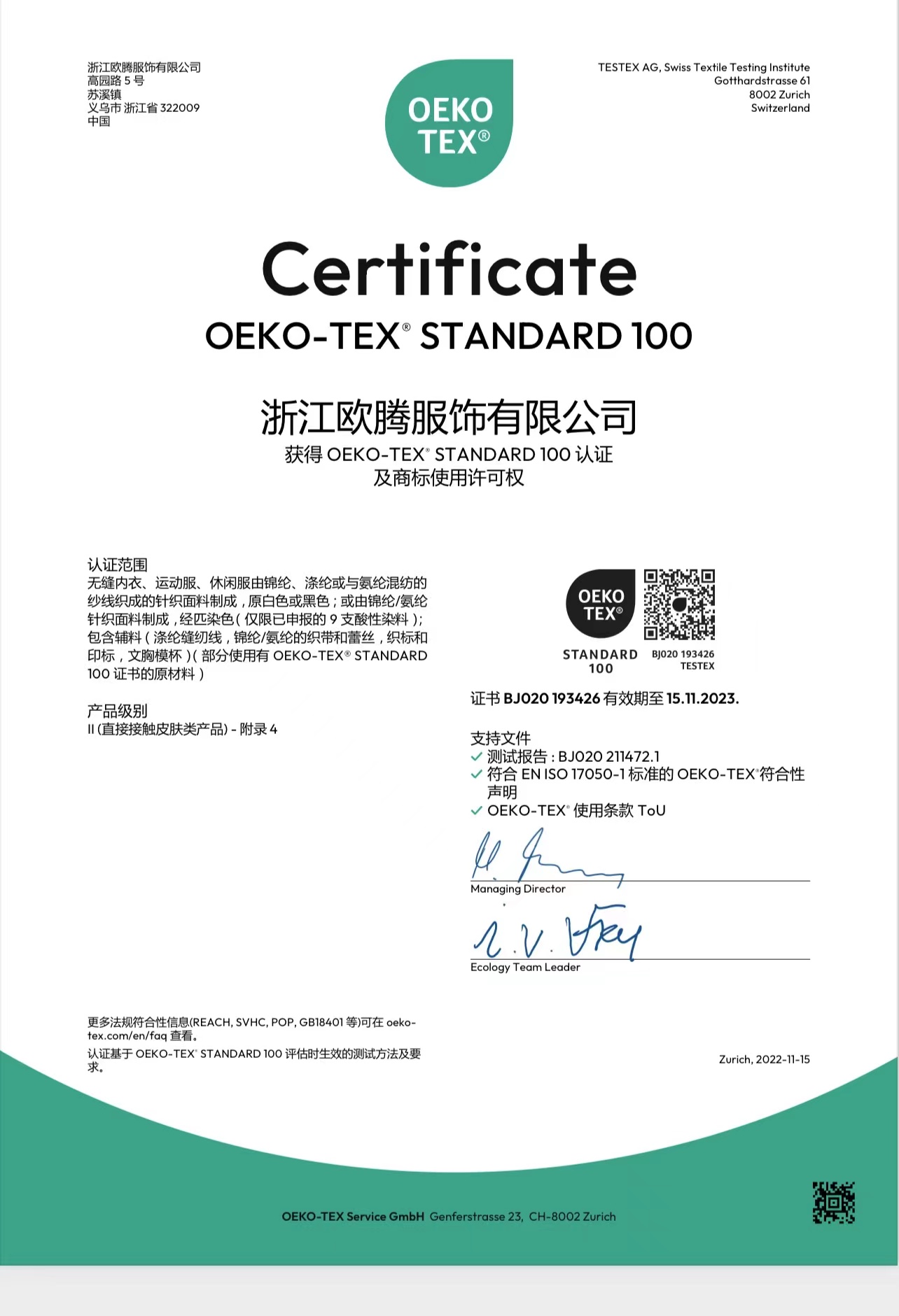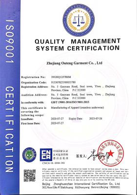 浙江歐騰服飾有限公司位于世界小商品之都-義烏。創(chuàng)立于2015年,是一家專業(yè)生產(chǎn)無縫針織運動服飾和內(nèi)衣的工貿(mào)一體企業(yè),擁有自主出口權(quán)。 工廠的占地面積約16000平方米 ,引進了大型圣東尼、高騰等多種先進的制衣設(shè)備300余臺。月產(chǎn)能可達90萬件。 歐騰服飾每年投入近百萬資金打樣開發(fā)新產(chǎn)品,有著一支高素質(zhì)設(shè)計、技術(shù)員工隊伍。工廠先后通過了ISO 9001質(zhì)量管理體系認證、BSCI認證、GRS認證、OEKO-TEX國際生態(tài)紡織品認證等多項專利檢測報告。可提供OEM&ODM服務(wù)。歐騰服飾以一套完整、科學(xué)的質(zhì)量管理體系,生產(chǎn)的服裝從原材料紗線到成衣,質(zhì)量完全能夠滿足國內(nèi)、國際質(zhì)量要求。獲得了客戶一致好評。工廠先后獲得省科技型企業(yè)、國家高新企業(yè)、義烏市誠信講信用單位、規(guī)上企業(yè)、信用AAA級等榮譽。